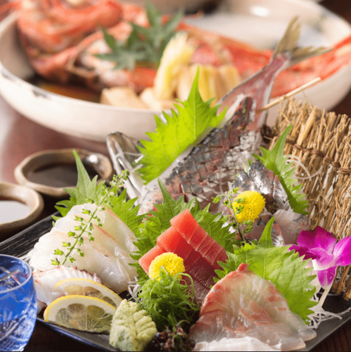 毎日届く市場からの直送の丸魚を、料理人が店でおろして刺身にしております。そのため鮮度抜群です。グランドメニューに載せているのは、日替わりのお造り3種盛りですが、事前にご要望いただければ写真のような舟盛りもご用意可能です。